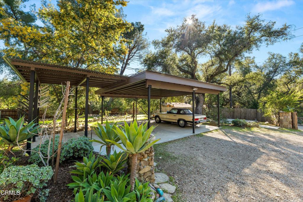 Love is in the Air! Quintessential Ojai living radiates from this enchanting East End property off Thacher Road on the delightfully named Happy Lane. Happy indeed ~ Spanning on an acre, this private mini-compound is a blissful fusion of lush beauty, shaded by mature canopy trees and filled with artistic inspiration. The main house offers two bedrooms, a converted office serving as a third bedroom, and a bathroom. Upstairs, the separate Junior ADU charms with one bedroom, one bath, and a spacious, treehouse-like terrace perfect for stargazing or unwinding with stunning views. Creative spaces abound, from the art studio and writer's office to the cozy chill cabin and outdoor showers, all complemented by an infinity cedar redwood tub. The grounds are an entertainer's dream, featuring a fire pit, yoga platform, rock walls, and former tortoise sanctuary, blending rustic charm with serene tranquility. Your guests will feel home in the chic and cool Airstream, set amidst the enchanting landscape. Ideal as a primary residence or a tranquil pied-a-terre, this bohemian haven embodies Ojai's laid-back, artistic lifestyle, surrounded by nature and conveniently close to top schools, hiking trails, and mountain adventures. This is Ojai living at its best!